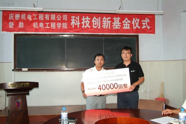 9月4日,黑龙江省庆懋机电工程有限公司赞助pp电子游戏平台官网pp电子游戏平台网站四万元,作为科技创新基金。从去年开始,庆懋机电工程有限公司便开始进行赞助,四月份pp电子游戏平台网站开展的“庆懋杯”科技创新活动,在pp电子游戏平台官网掀起一股创新热潮,为校“五四杯”,全国“挑战杯”挑选出了大量优秀的作品。
