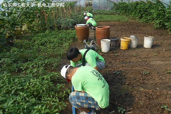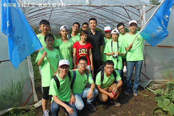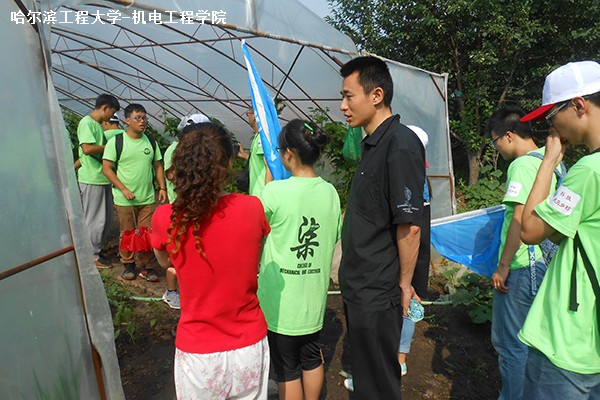 7月19日下午2点整,pp电子游戏平台网站“科技点亮乡村”暑期社会实践队伍在哈尔滨市道外区巨源镇顺利开展了参观大棚、帮助农民打理农作物的活动。