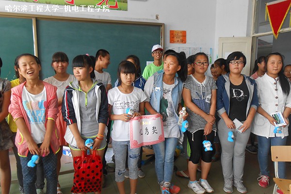 最后由闫子�带领的一组以最终成绩承重65kg夺得一等奖,肖月组、刘杭杭组分别获得第二、三等奖,宋科杰和位晓华组均获得优秀奖。此次比赛取得圆满成功。 通过此次比赛,同学们积极动脑,灵活运用所学知识,而且锻炼了动手能力。实践队员们与当地的同学们进行了良好互动,寓教于玩乐。活动达到了预期效果,获得了校领导与同学们的一致好评。 |
