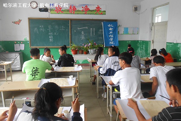 工作人员于上午9时40分在中学门口集合并出发前往指定教室,10时整开始上课,上课过程中张世奇向大家介绍了书法的历史,以及不同的字体如楷书,隶书,行书等。同时还介绍了历史上著名的几位书法家例如王羲之,赵孟�,颜真卿等。随后张世奇向大家讲解了基本的书法书写姿势以及规则。并让每一位学生进行实践练习,练习期间工作人员对学生们进行耐心指导,学生们学习兴趣浓厚,与工作人员深入交流,氛围热烈。