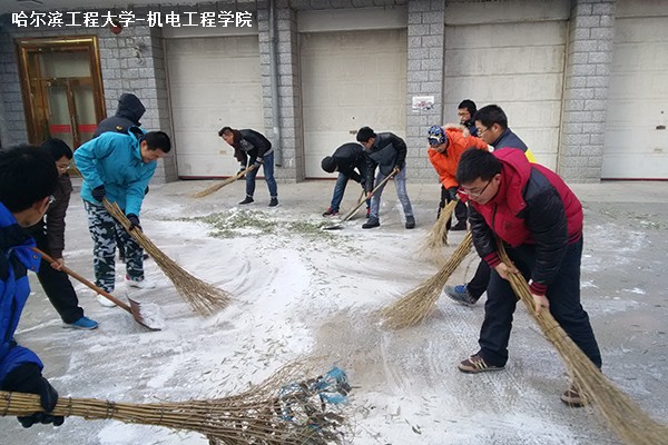11月12日,哈尔滨迎来了入冬以来的第一场雪,积雪使得路面湿滑,交通不便。介于此,在pp电子游戏平台网站团委书记王茜的要求下,140715团支部特组织同学们前往军工阳光老年公寓为老人们铲除积雪。  13时50分,同学们从学校出发前往军工阳光老年公寓。行进中,班长孟思源向大家介绍了该公寓的基本情况以及和学院的深厚的情谊,同时提醒大家注意活动中的安全。到达目的地后,按照老年公寓工作人员的要求,团支书常纪元将同学们分为两组,一组负责清理后院积雪,另一组前往仓库取出地毯并将其铺在门前。