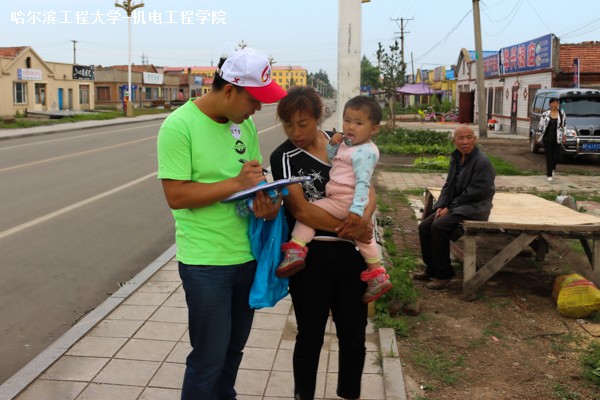 出发前,刘君威首先给队员们分配调查问卷,明确每组活动地点并确定集合时间地点。8时整,队员们准时从漠河县高级中学出发。经过半小时的徒步行进,大家来到县城中心,开始针对阳光、松苑等县城周边乡村和各种街道进行调研。