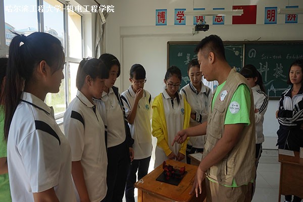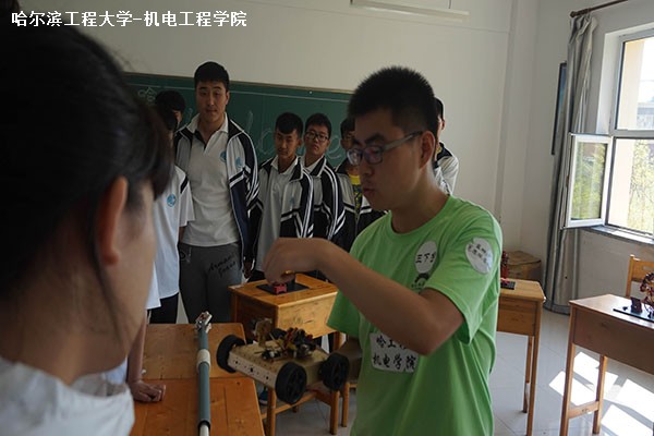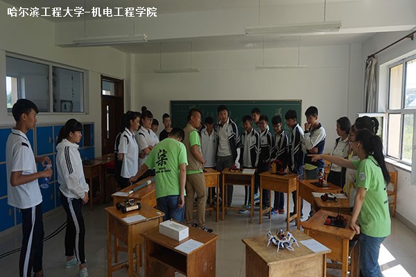 7月24日10时30分,pp电子游戏平台网站“美丽中国・乡土漠河”社会实践队在黑龙江省漠河县高级中学开展科创作品展览与互动三下乡实践活动。本次科技展展示了包括慧鱼机器人在内的十余项科创作品,并介绍3D打印的相关知识。pp电子游戏平台网站科技部部长陈伟与机电创新实验室成员孟思源主讲这次展览。