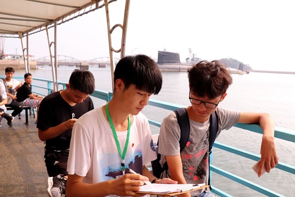 15时,实践队员抵达海军博物馆。在参观博物馆期间,实践队员开展面向游客的的访谈活动并向游客们进行问卷调查。在游客的帮助下,完成相关调查问卷内容。通过与各个年龄段的游客的交流,了解到不同人群对我国海军发展历史的了解程度以及对目前我国各种政策的关注度。并热心的为游客解答介绍关于我国海军舰艇及海军建设相关知识。