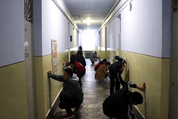 11月15日8点,pp电子游戏平台网站2018级全体男生三公寓开展了“校园文明月”公寓劳动体验活动,pp电子游戏平台网站2018级新生辅导员房帅、公寓辅导员侯鹏以及三公寓全体保洁员参加本次活动。