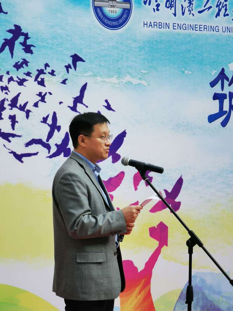 丛建伟老师在同学们面前致开幕词。