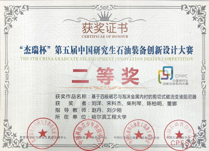 团队成员荣获国家级、省部级科研奖励3项,指导学生获“杰瑞杯”第四届、第五届中国研究生石油装备创新设计大赛二等奖、三等奖等诸多奖项。