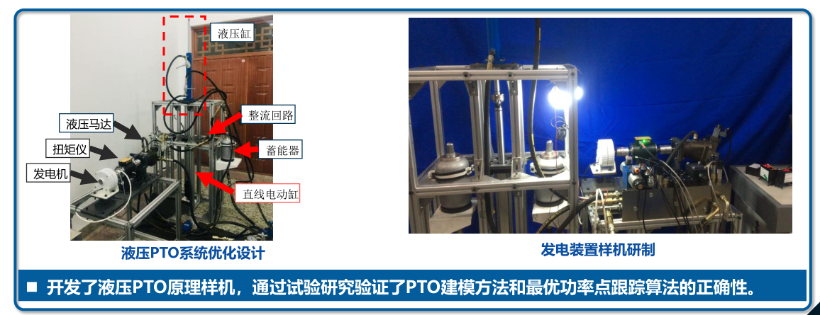 开发了液压PTO原理样机,通过试验研究验证了PTO建模方法和最优功率点跟踪算法的正确性。