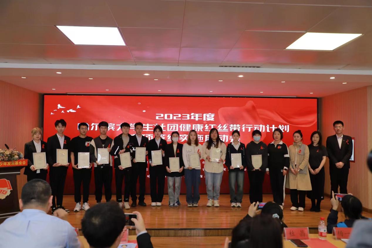 5月13日,由黑龙江省希望工程捐助中心、哈尔滨市疾病控制预防中心主办,黑龙江省志愿服务基金会、黑龙江省青少年发展基金会支持,哈尔滨市嘉仁社会组织服务中心执行的2023年哈尔滨大学生社团健康红丝带计划的签约授牌资助仪式在哈尔滨市希望大厦举行。本次活动共有来自全市40多所高校的80余只队伍参与。我院“蓝蝴蝶”志愿服务队作为其中的一个团队参加了此次活动。团委书记房帅,项目负责人阮柏栋,宣传员袁勇出席参加此次活动。