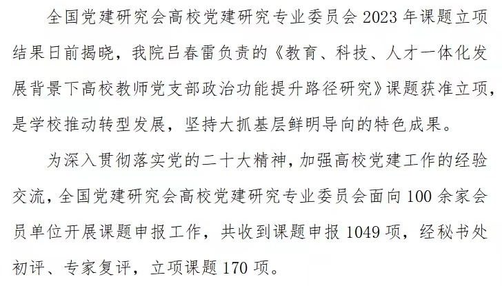 主题教育培育新成果 | 学院获党建课题全国立项