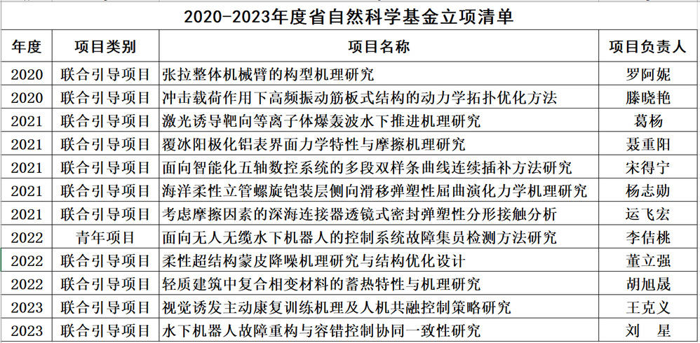 pp电子游戏平台网站2020-2023年度省自然科学基金资助清单