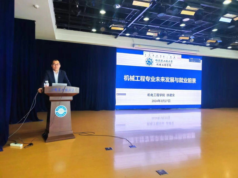 首先,徐建安院长向参会的同学们做了题为《机械工程专业未来发展与就业前景》的讲座,分别从机械工程专业简介、机械工程服务领域、机械专业与中国智造、机械专业就业前景四个方面进行了介绍,与同学们分享了从“中国制造”到“中国智造”再到“中国创造”的强国梦想,分享了对人生道路的阅历与智慧。希望同学们努力学习,尽快成才,为海洋强国贡献力量!
