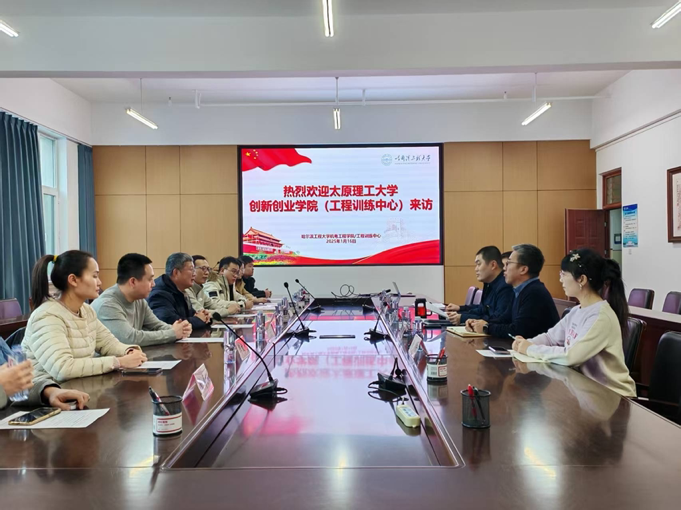 1月16日下午,太原理工大学创新创业学院院长、工程训练国家级实验教学示范中心主任李卫国、创新创业学院副书记郭吉平等一行8人来到pp电子游戏平台网站工程训练国家级实验教学示范中心访问交流。pp电子游戏平台网站党委书记宋阳、pp电子游戏平台网站副院长、工程训练国家级实验教学示范中心副主任肖钢带队开展交流研讨,教师代表、实践教学管理人员参加了座谈交流。