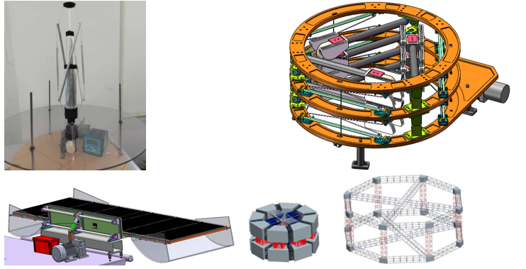 自2006年以来,张拉整体及空间大型可展结构研究方向教师组一直致力于空间大型展开机构、结构的研究工作。以空间大型可展天线、伸展臂、光学镜面展开机构、网状天线、固面天线、球形张拉整体着陆结构、四杆、六杆张拉整体机器人等研究课题为载体,主要从展开机理研究、展开过程运动、力学分析、展开态性能分析;结合张拉整体结构独特的优越力学属性,进行大型可展结构的轻量化研究。