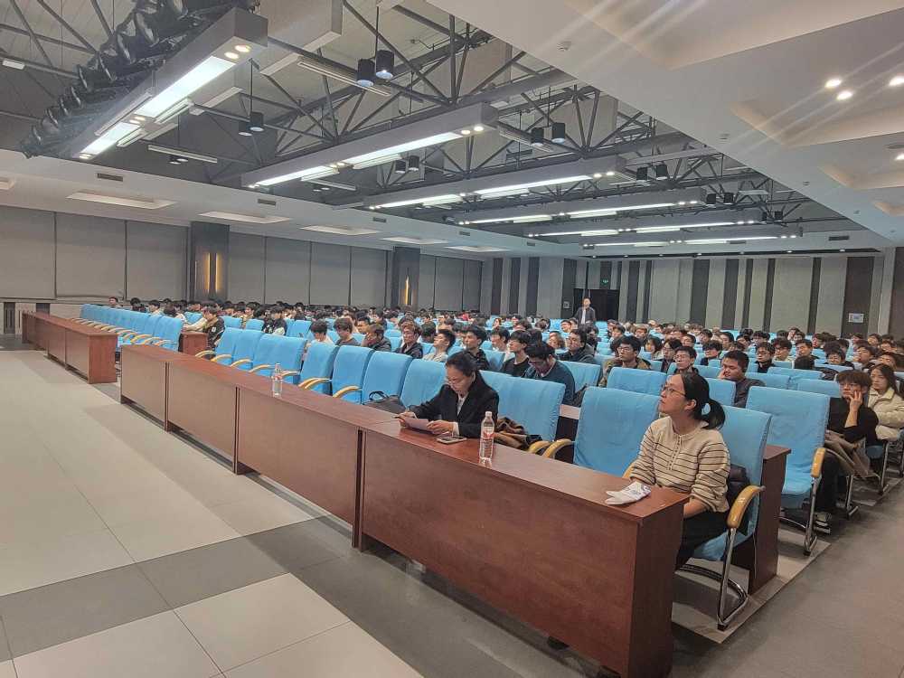 首先,徐建安院长向参会的同学们做了题为《机械工程专业未来发展与就业前景》的讲座,分别从机械工程专业简介、机械工程服务领域、机械专业与中国智造、机械专业就业前景四个方面进行了介绍。徐院长强调,作为一所以海洋与国防为特色的高校,肩负着服务国家装备制造和海洋科技发展的光荣使命。哈军工的优良传统为我们积淀了深厚的军工底蕴,多年来培养的毕业生以“可靠顶用、拔尖创新”的鲜明特质,赢得了国防科研院所和高端装备制造单位的高度认可。他勉励同学们要珍惜学习时光,勇攀科技高峰,以实际行动投身海洋强国建设,为打造国之重器贡献青春力量!
